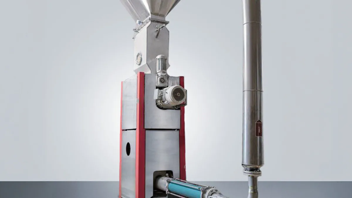 Ziemann Holvrieka presents the “T-Rex WET,” a milling unit for wet milling. The dry version of this series has been established on the market since 2015. With the new design, the concept is now being transferred to hygienically demanding processes. The milling unit is characterized by its grinding mechanism. Instead of classic cylindrical rollers, interlocking, double-conical grinding segments are used. These form a zigzag-shaped grinding gap. Compared to conventional roller mills, this reduces the length of the grinding unit by up to two-thirds.